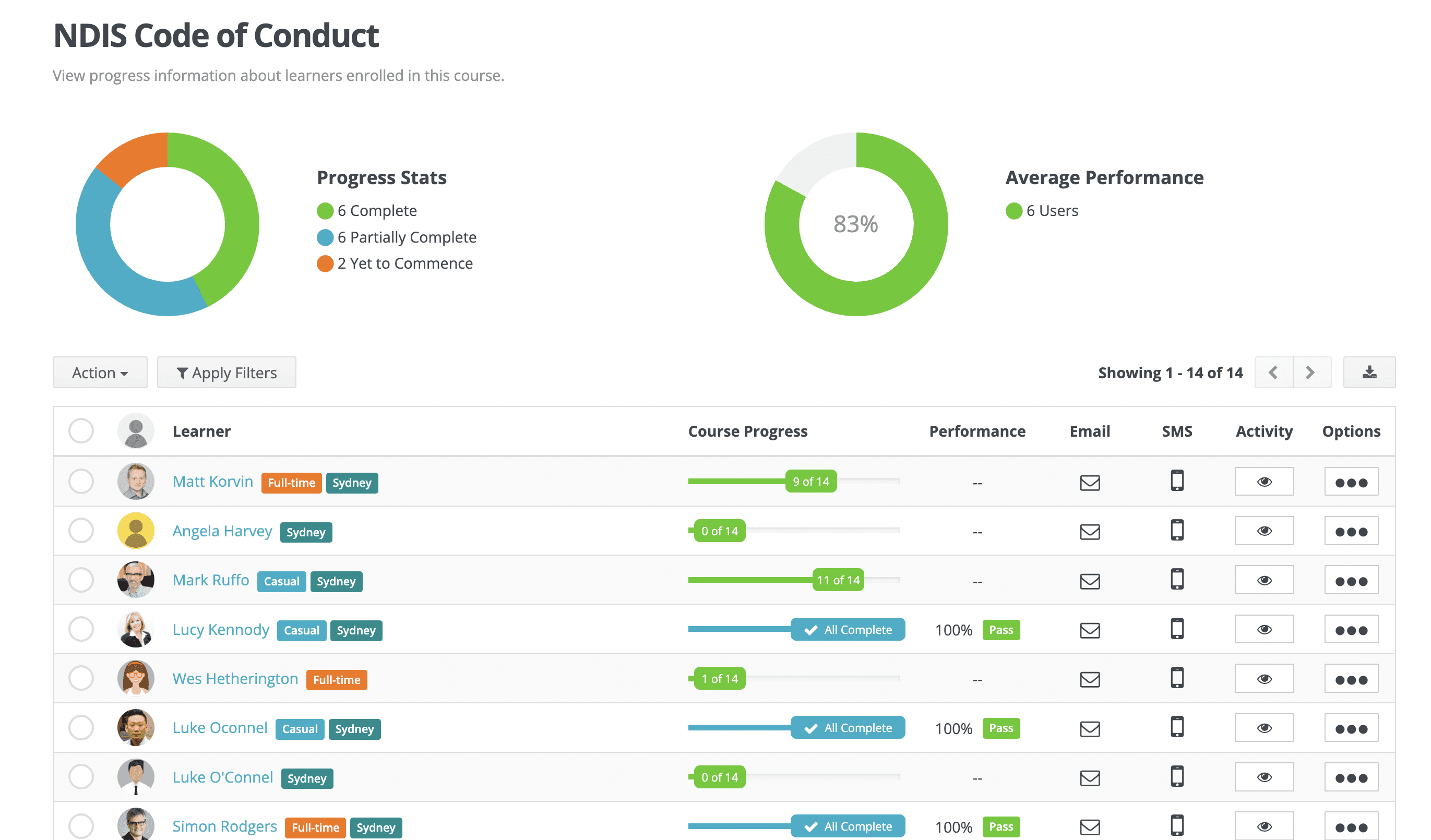For large NDIS providers, managing extensive training programs across multiple departments can be challenging.