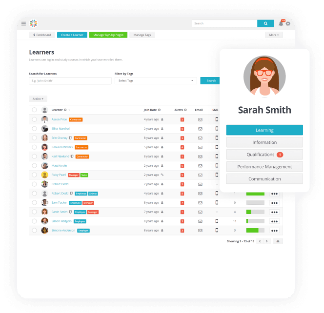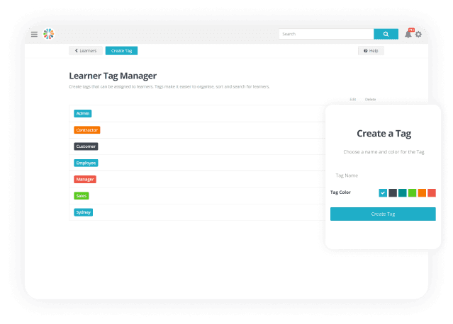 Create tags that can be assigned to learners. Tags make it easier to organise, sort and search for learners.